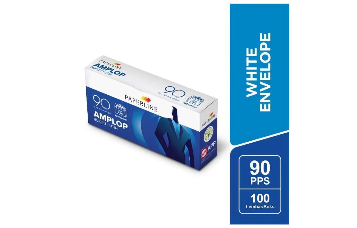 Amplop Paperline No.90 PPS terbuat dari kertas 80gsm dan berisi 100 lembar di tiap pak.