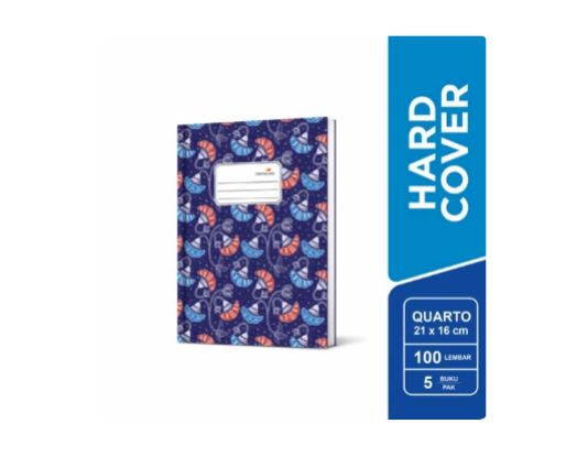 Buku Hardcover Quarto 100 berukuran folio dan terbuat dari kertas berkualitas yang halus dan tebal. Tiap buku berisi 100 lembar kertas.